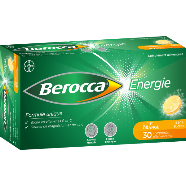 Découvrez Berocca® Energie orange, un complément alimentaire à l'efficacité scientifiquement prouvée, qui associe les vitamines et minéraux (zinc et magnésium) dont vous avez besoin pour vous aider à retrouver votre énergie physique et mentale !