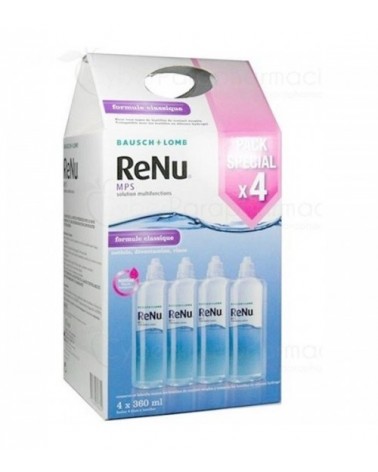 La Solution Multifonctions MPS Renu est une solution stérile, tamponnée et isotonique utilisée pour nettoyer, décontaminer, lubrifier, rincer et conserver toutes les lentilles souples.